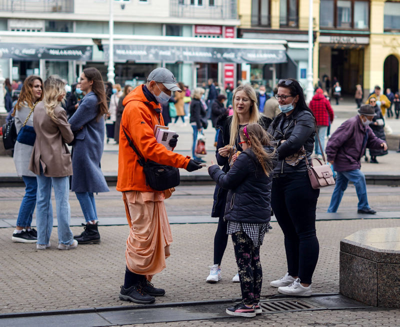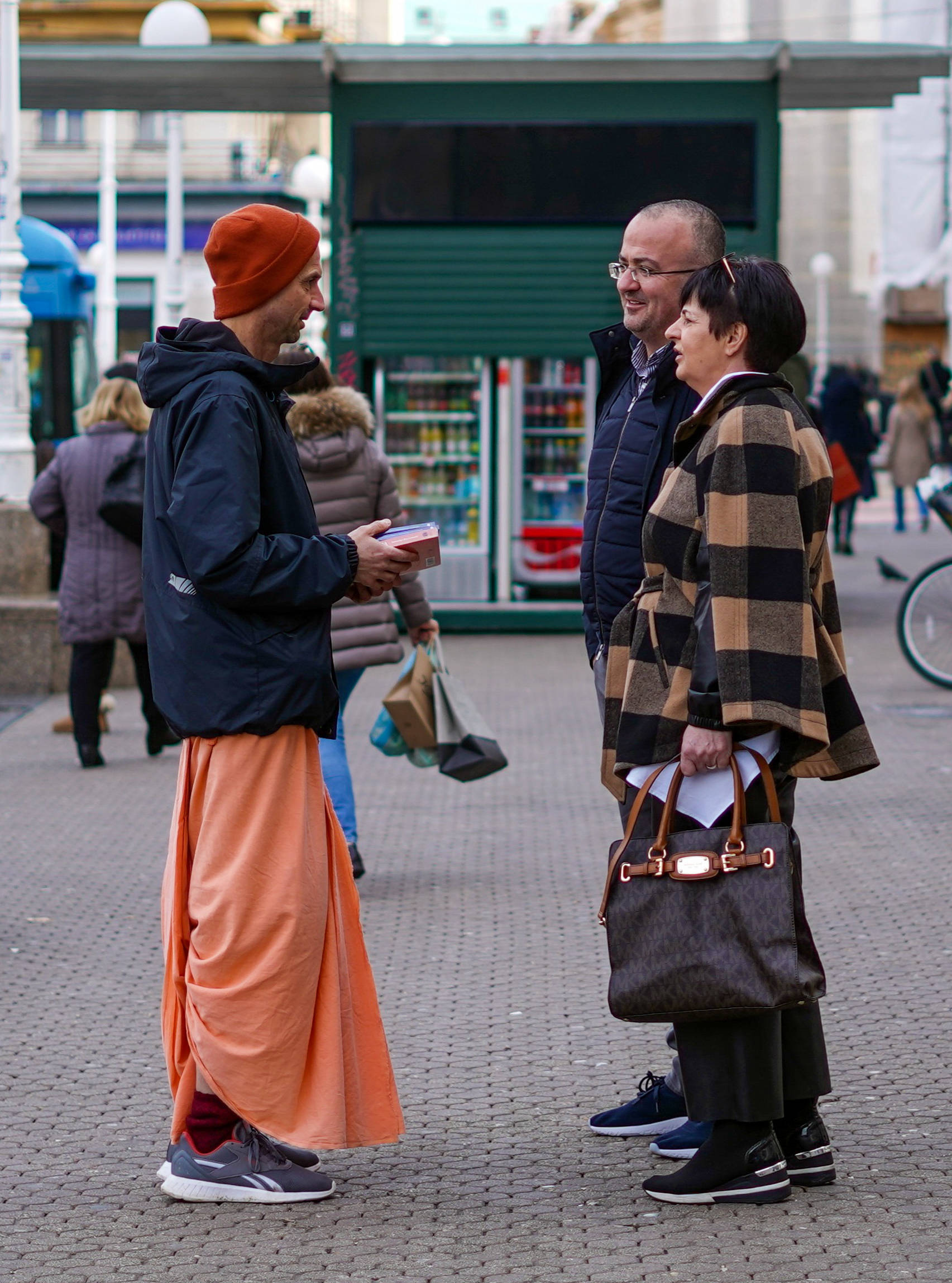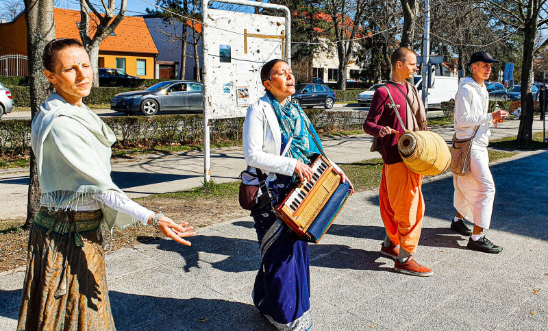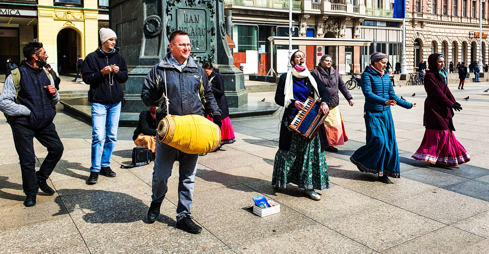 Ovog mjeseca se ne možemo pohvaliti nekom posebnom učestalošću izlazaka u harinam preko tjedna, ali zato smo barem uspjeli zadržati entuzijazam u vezi harinama subotom i bilo je veoma uspješno prema mnogim mjerilima: Odaziva bhakta iz kongregacije, prijemčivosti ljudi vani i spremnosti da se pridruže (što možete vidjeti na slikama ispod) te naravno, broju podijeljenih keksića i knjigica.