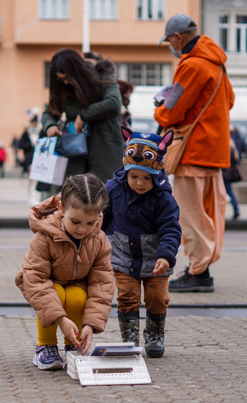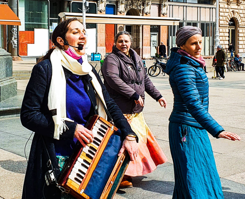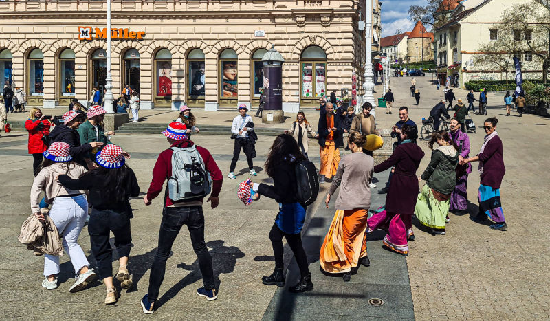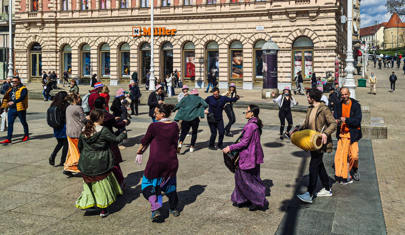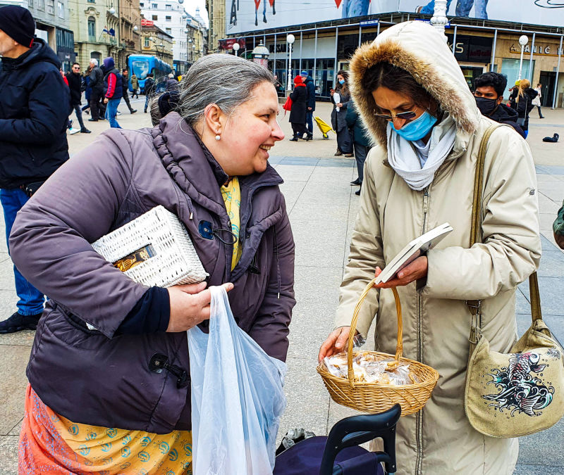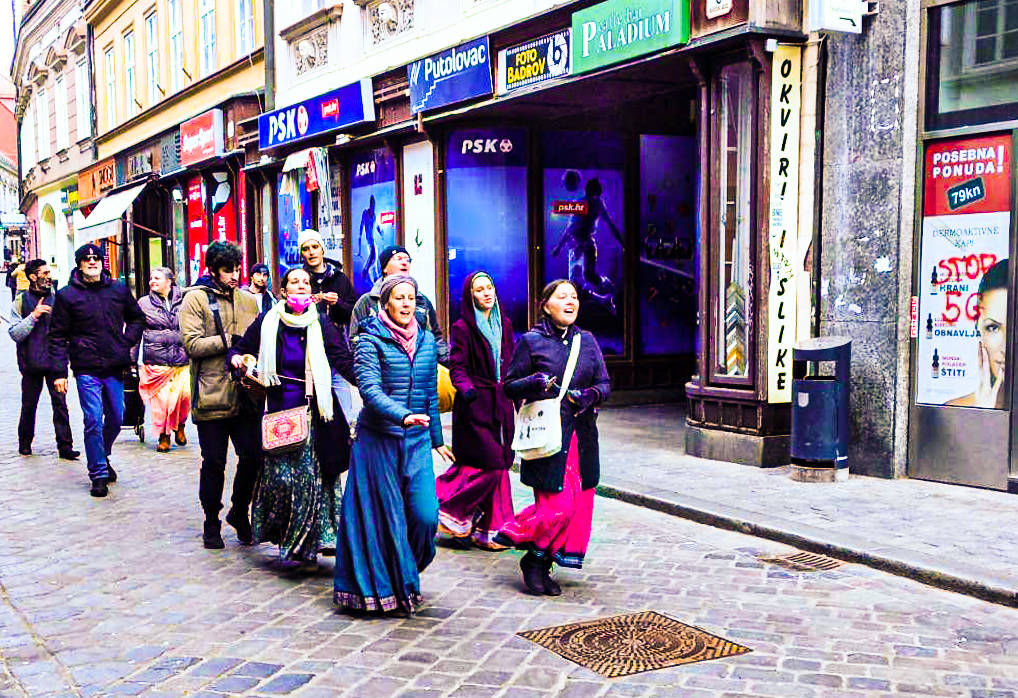 Ovog mjeseca se ne možemo pohvaliti nekom posebnom učestalošću izlazaka u harinam preko tjedna, ali zato smo barem uspjeli zadržati entuzijazam u vezi harinama subotom i bilo je veoma uspješno prema mnogim mjerilima: Odaziva bhakta iz kongregacije, prijemčivosti ljudi vani i spremnosti da se pridruže (što možete vidjeti na slikama ispod) te naravno, broju podijeljenih keksića i knjigica.