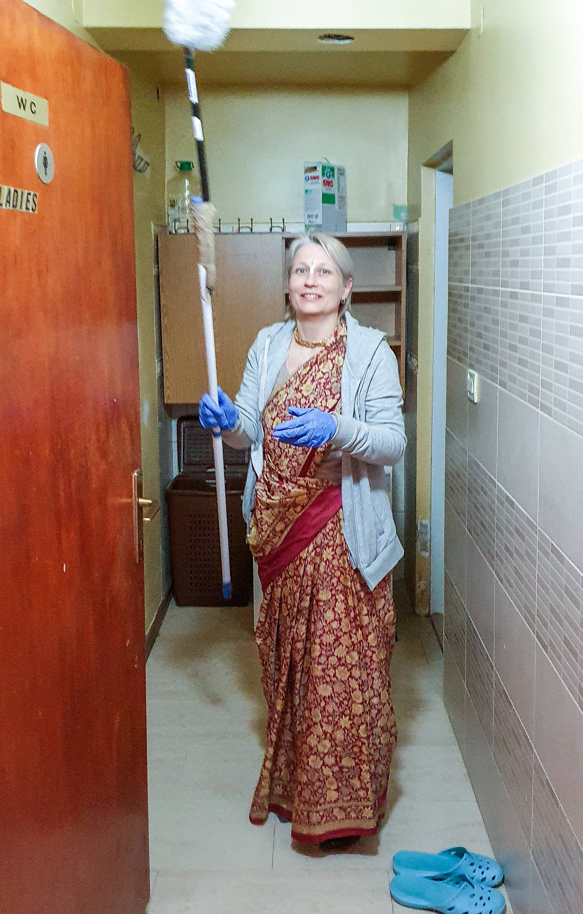 Ljerka bhn. za mnogo toga: Postojana briga za Tulasi-devi, izrada cvjetnih aranžmana, vođenje Food for Life projekta, dostavljanje novih odijelca za festival i mnogo drugih lijepih stvari.