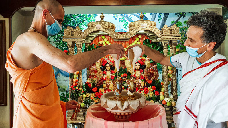 Jayanti dd i Vijaya Gauranga d za večernju službu pri oltaru i kuhanje.