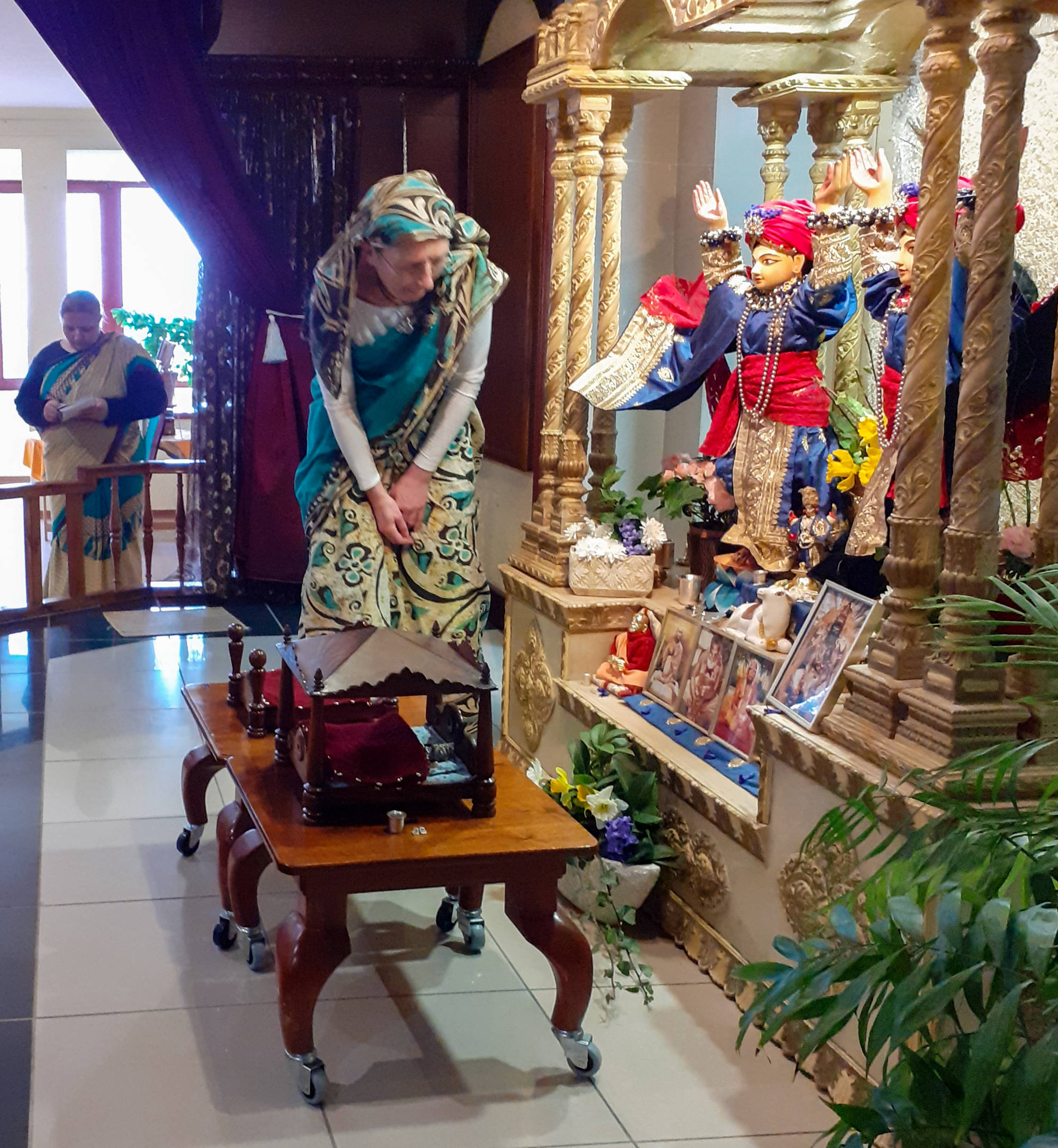 Revati dd za službe pri oltaru, kuhanje, izradu sandeša za ponudu i palačinke za sankirtan bhakte.