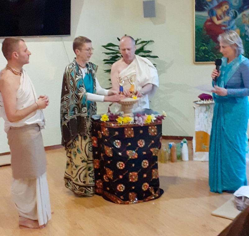 Kristina bhn. za brigu oko propovijedanja mladima, velikim donacijama za hram i redovnoj podršci harinamima pjevanjem i plesanjem.