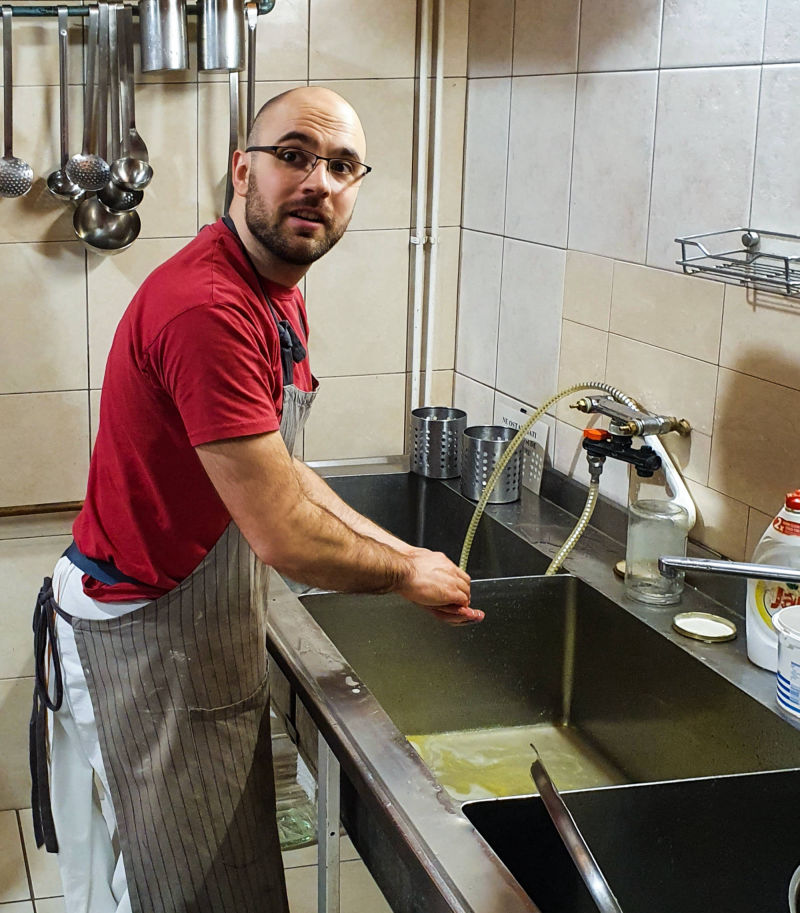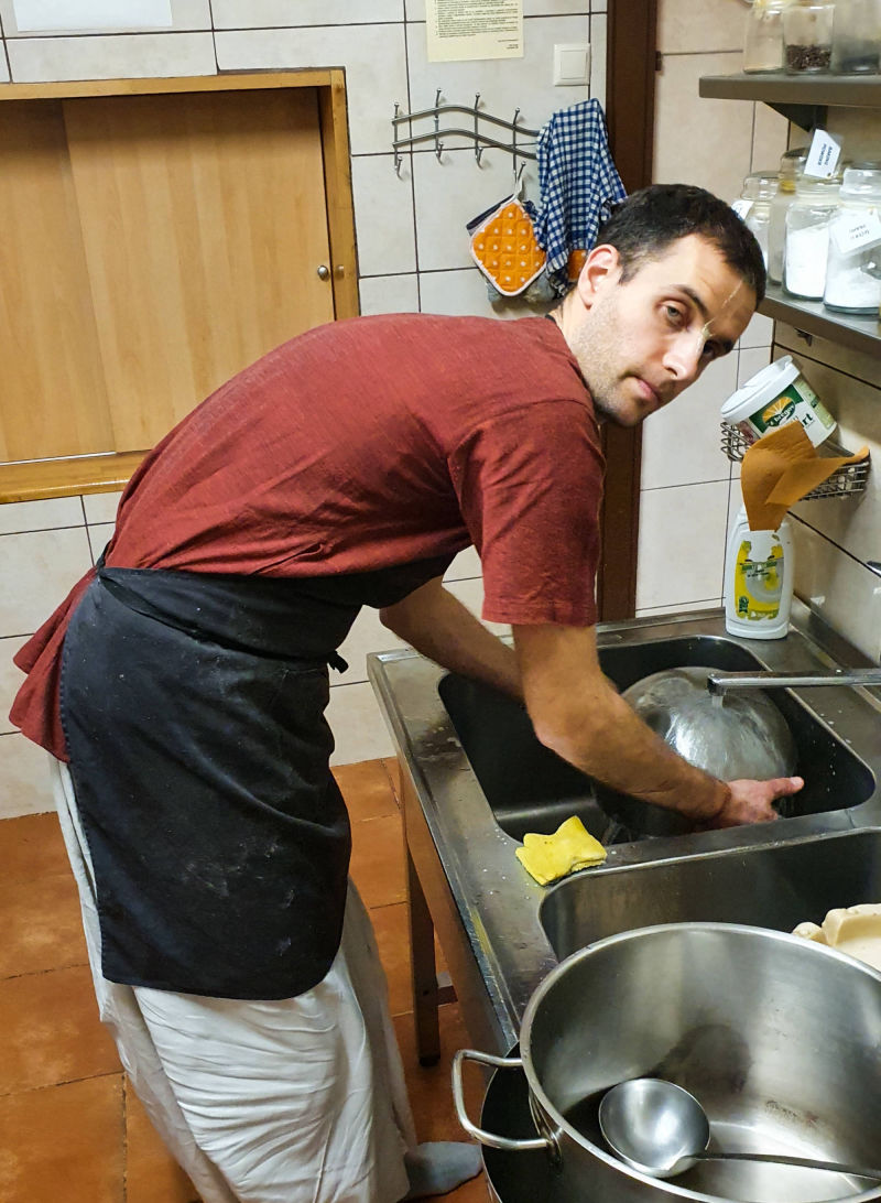 Bhagavat d za pranje velikih lonaca nakon festivala. Neki od lonaca su bili veći čak i od njega!
