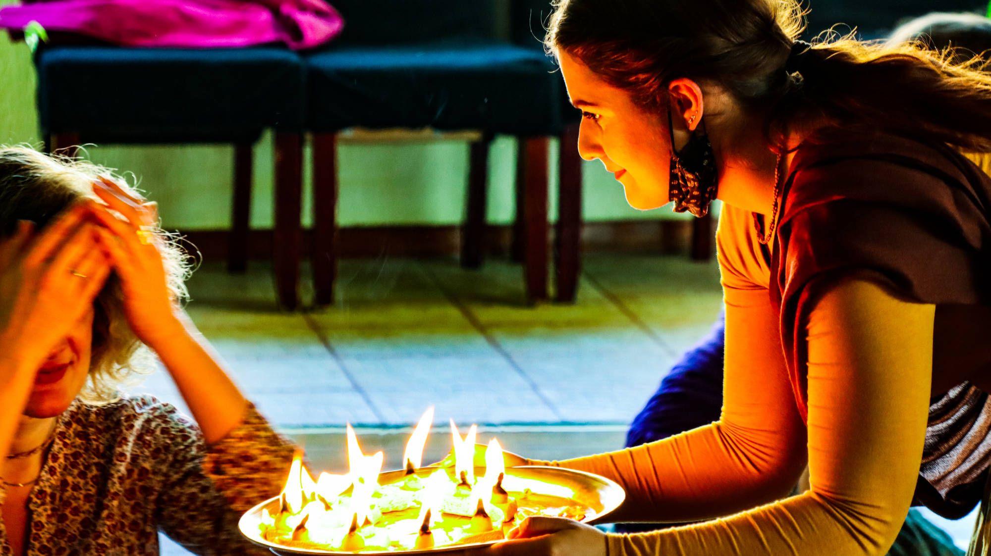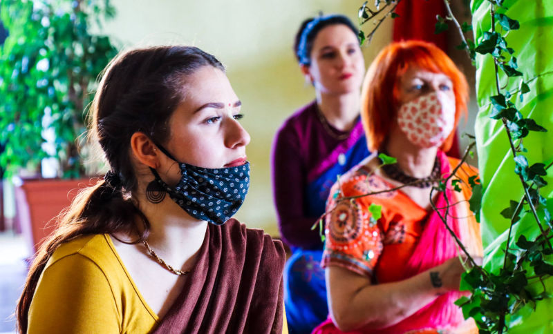 Manju-bhasini dd, Hema-gauri dd i Fani za uređenje hramske prostorije za festival.