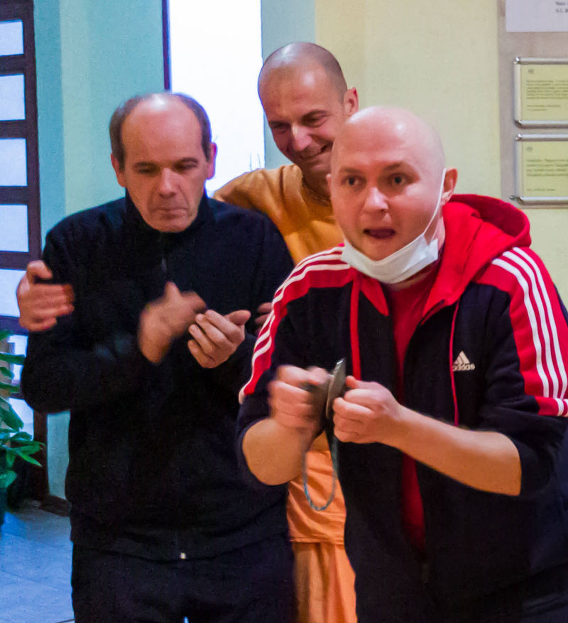 Gauranga bh. za posjetu hramu i mnogim vrijednim službama u hramu. Zahvaljujući njemu, za vrijeme njegovog boravka u hramu, gotovo svakodnevno smo izlazili u harinam.
