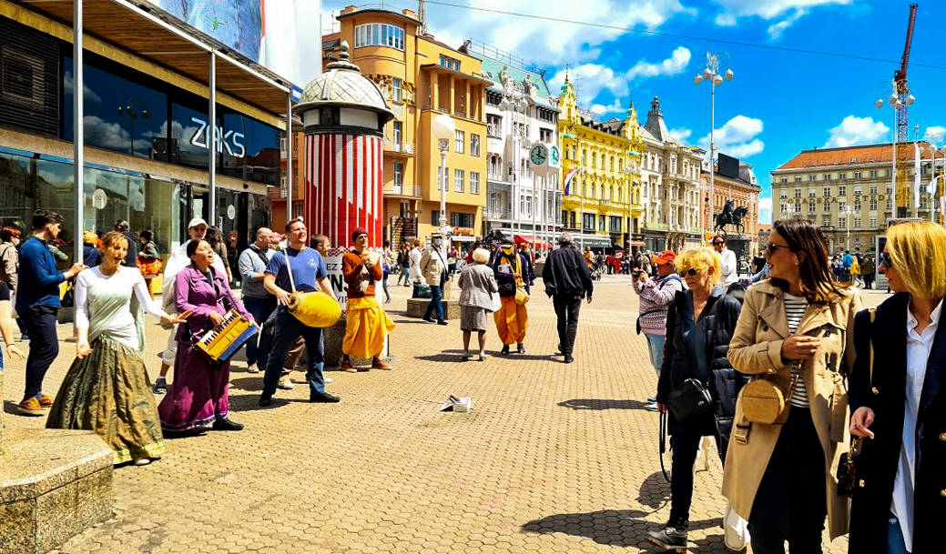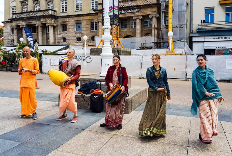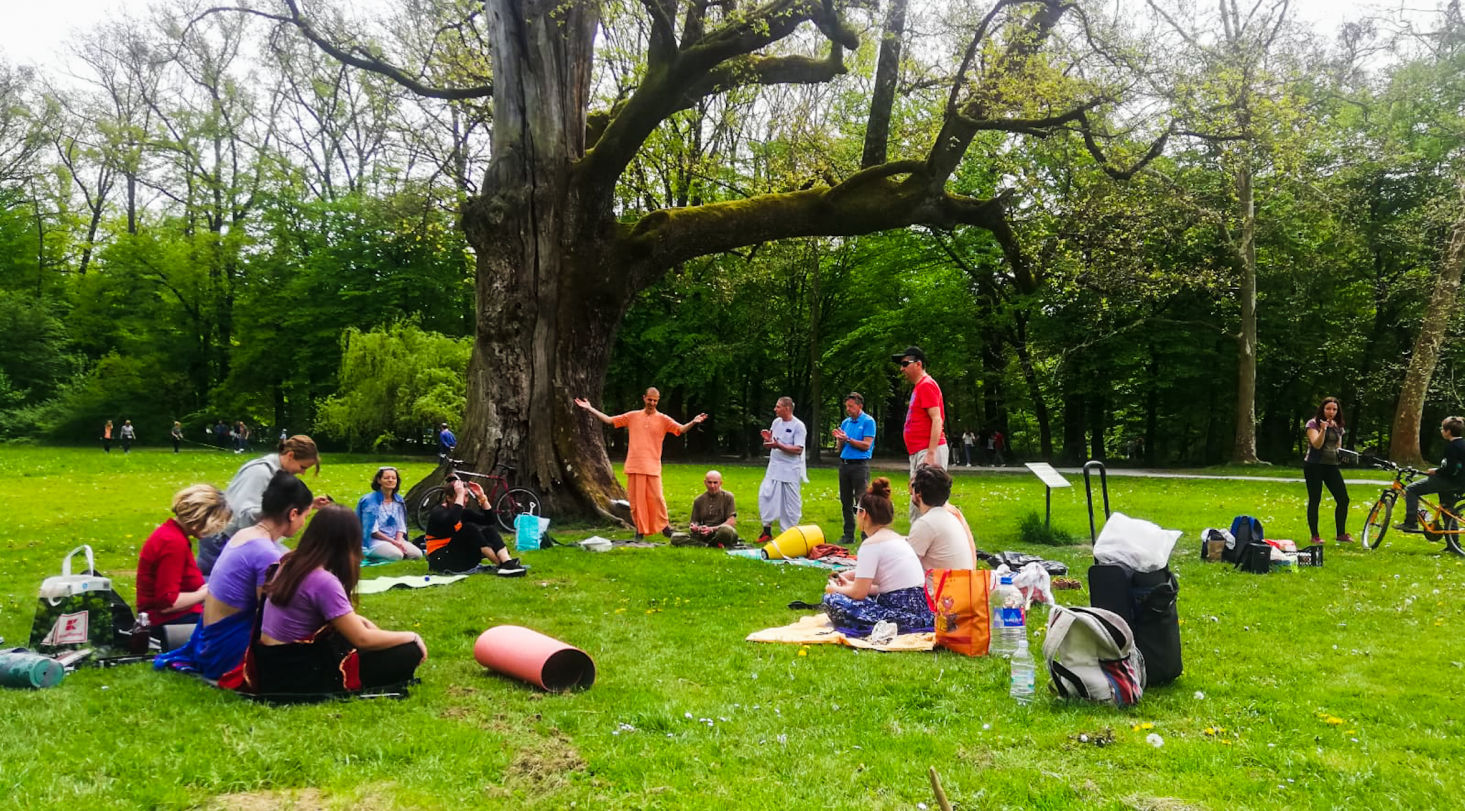 Svaki, čak i nevaišnavski praznik, bhaktama je prilika okupiti se i slaviti Krišnu. Tako je bilo i za Praznik rada. 15-ak bhakta iz Zagreba i okolice entuzijastično je bhajaniralo na livadi "kod orla". Njihovo glasno pjevanje privuklo je i nekolicinu "slučajnih" prolaznika, a još i više njih, kada su bhakte počeli dijeliti prasadam koji su pripremili kod kuće kako bi ga podijelili s drugima.