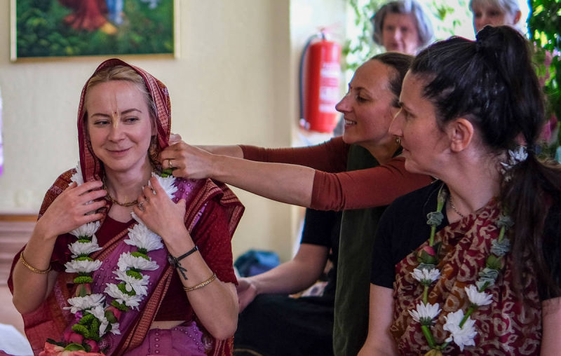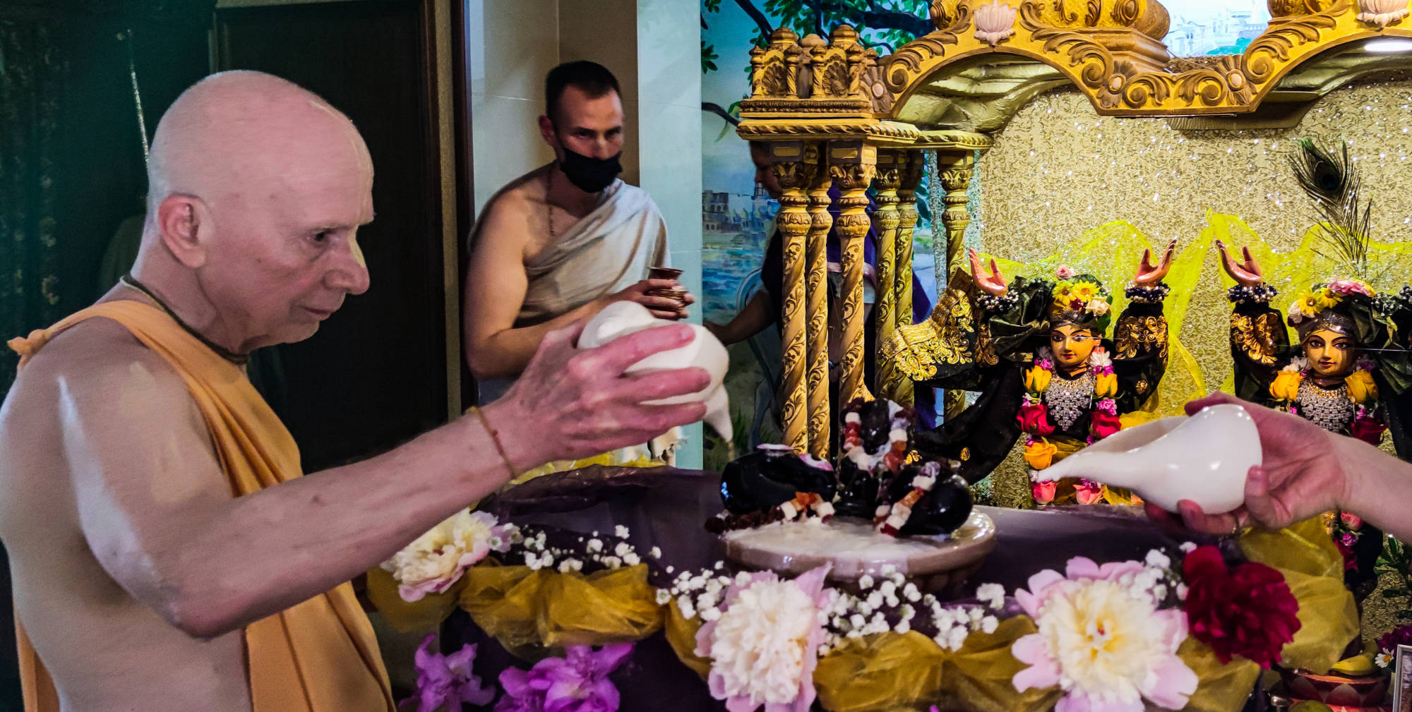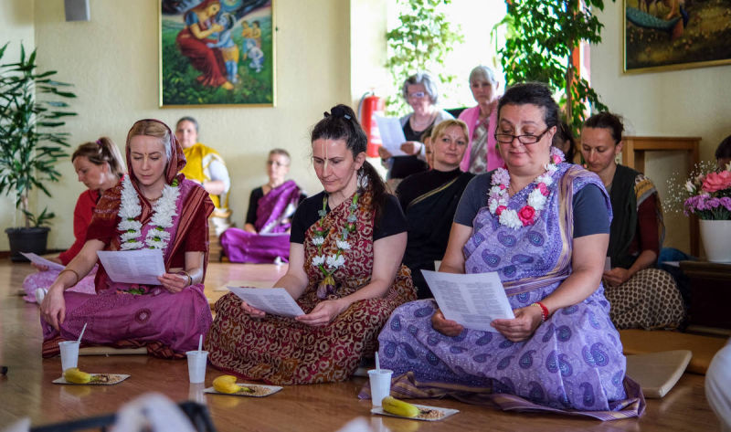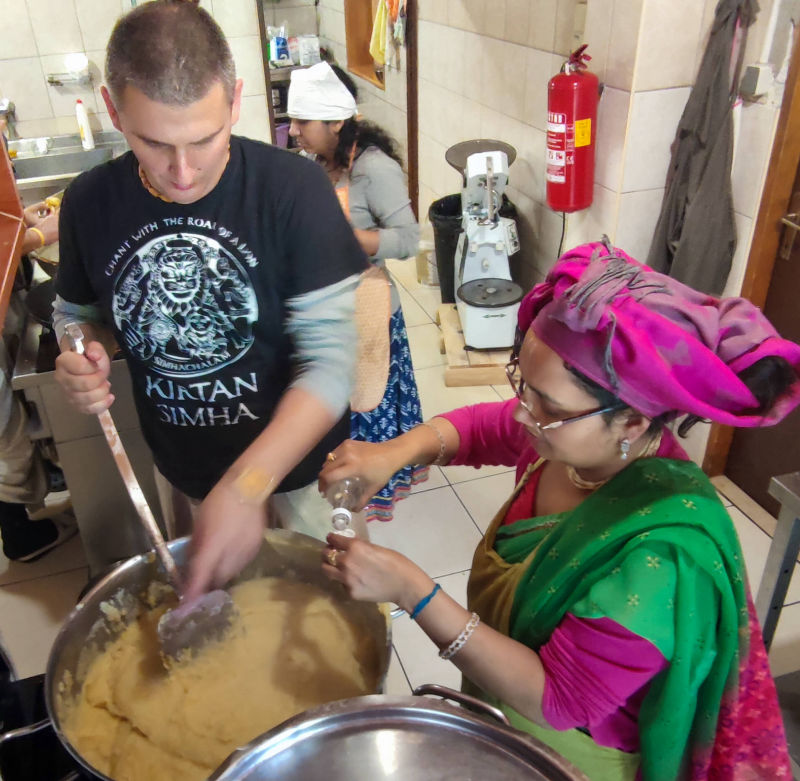 Bhoga za božanstva: Ukoliko imate brahmansku inicijaciju možete kod kuće pripremiti jelo poput slatkiša te donijeti u hram kako bi se ono moglo ponuditi za večeru Šri Šri Gaura Nitai. Jayanti devi dasi to čini redovno ponedjeljkom i petkom.