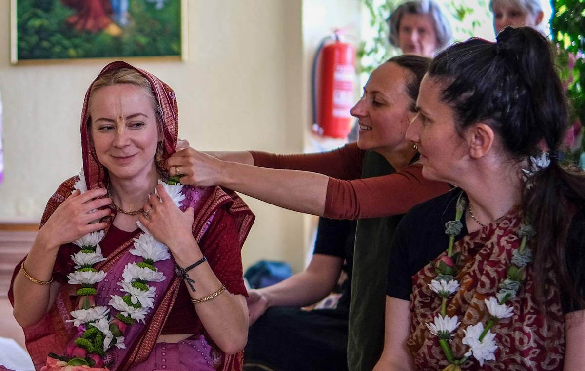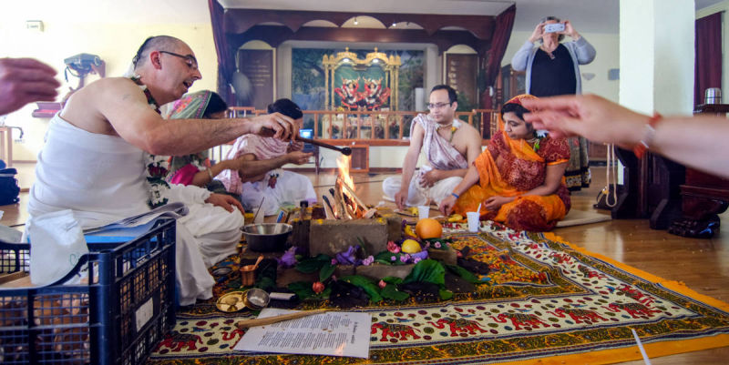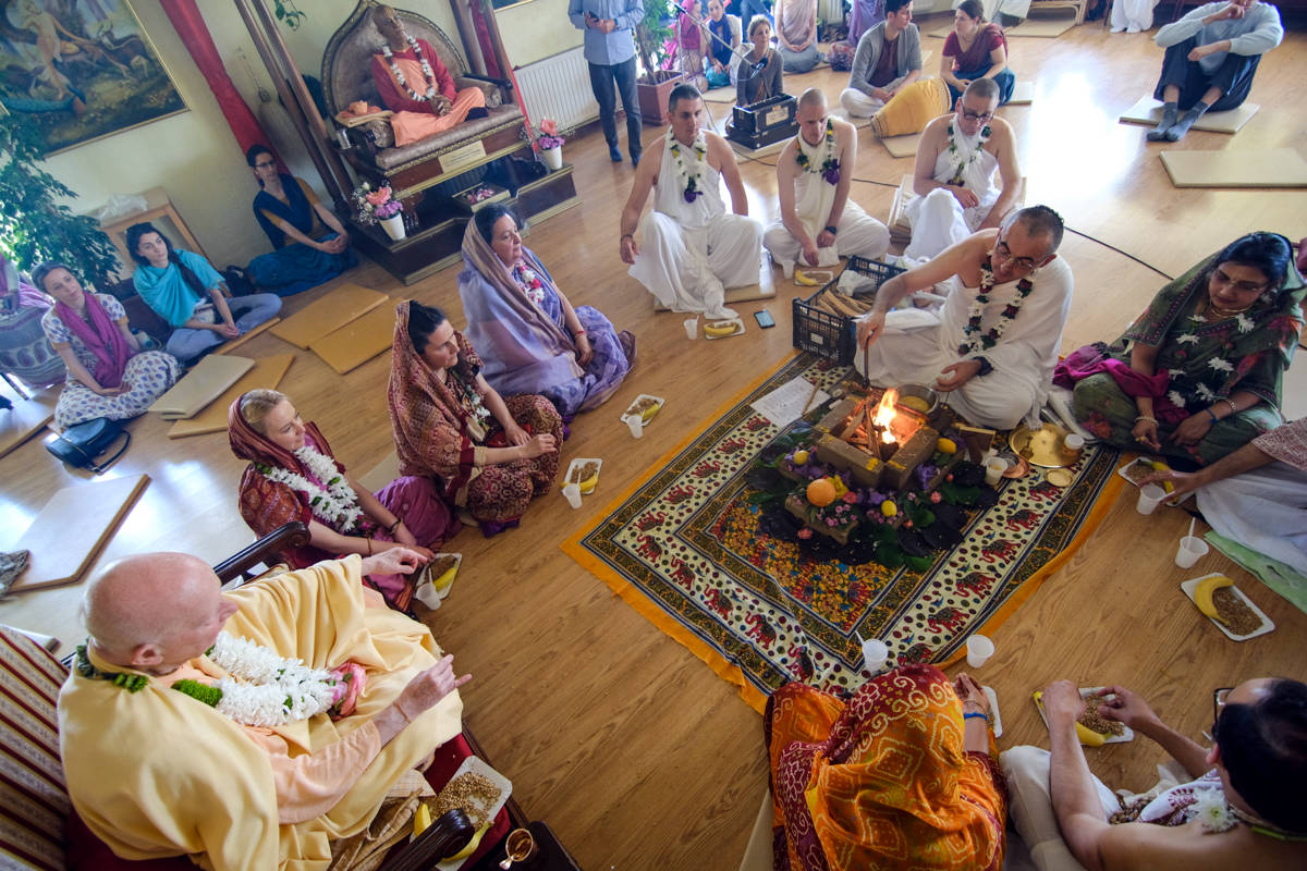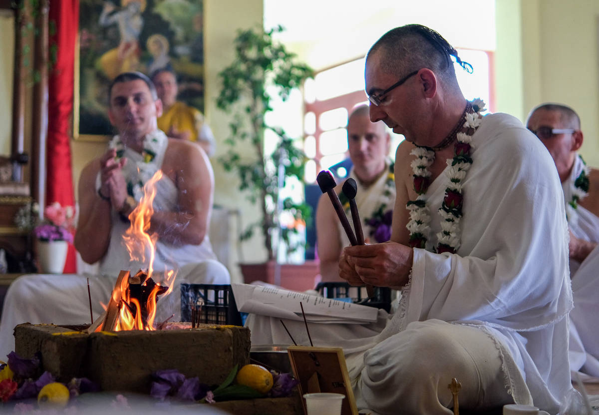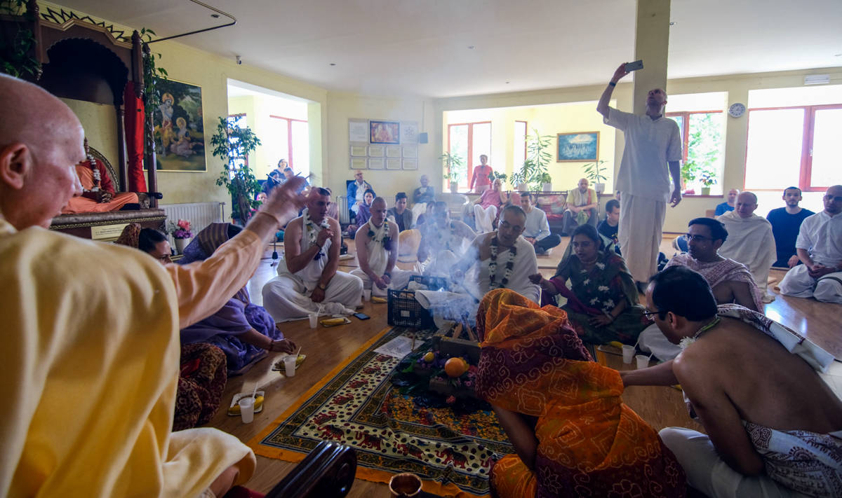 Počašćeni smo da je Njegova Svetost Candramauli Swami Maharaj baš u našem hramu odlučila održati ceremoniju inicijacija za desetero svojih učenika. Veoma smo sretni što su kandidati imali priliku doživjeti ceremonijalno iskustvo inicijacije i žrtvene vatre u fizičkoj prisutnosti svog gurua, umjesto da se to dogodilo, kako to u mnogim slučajevima u posljednje vrijeme biva, preko interneta.