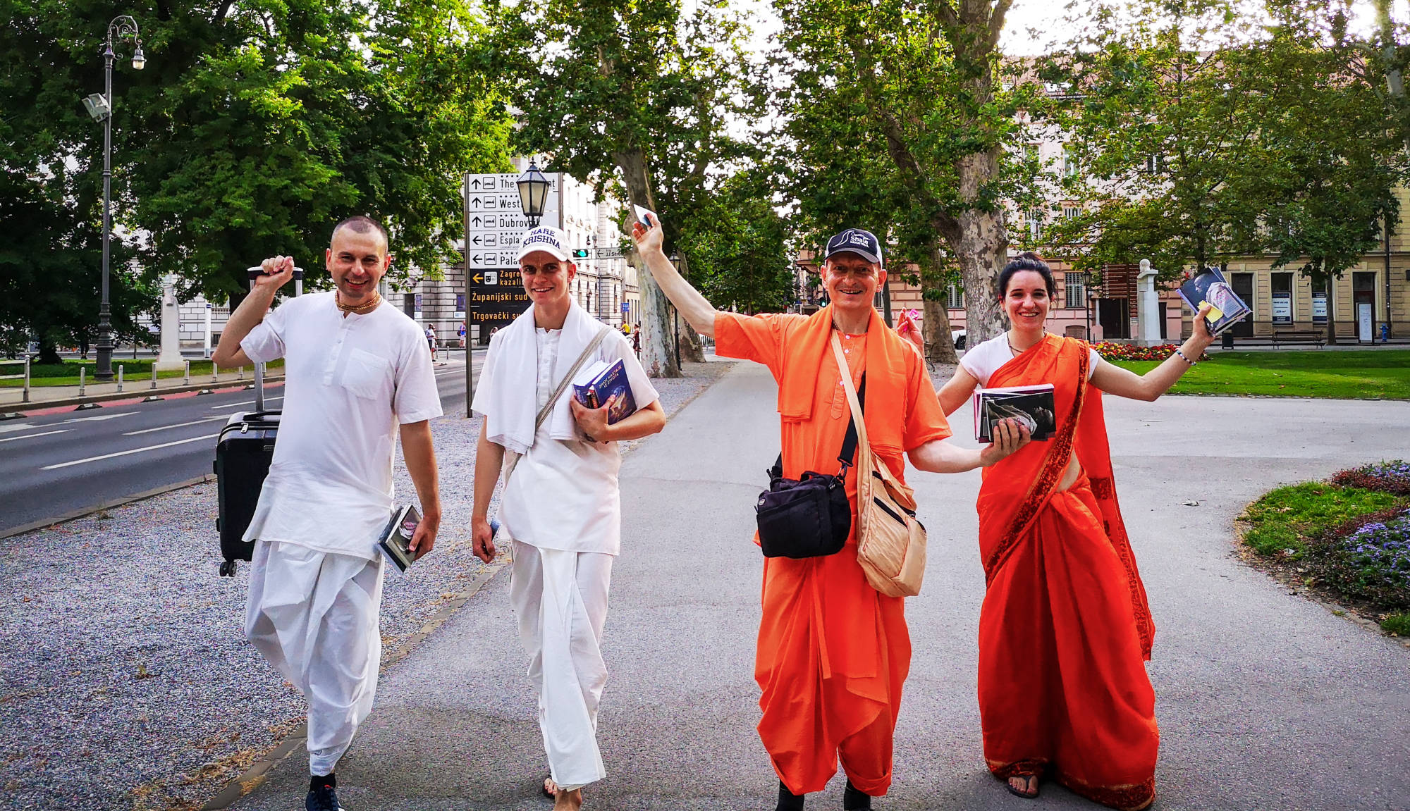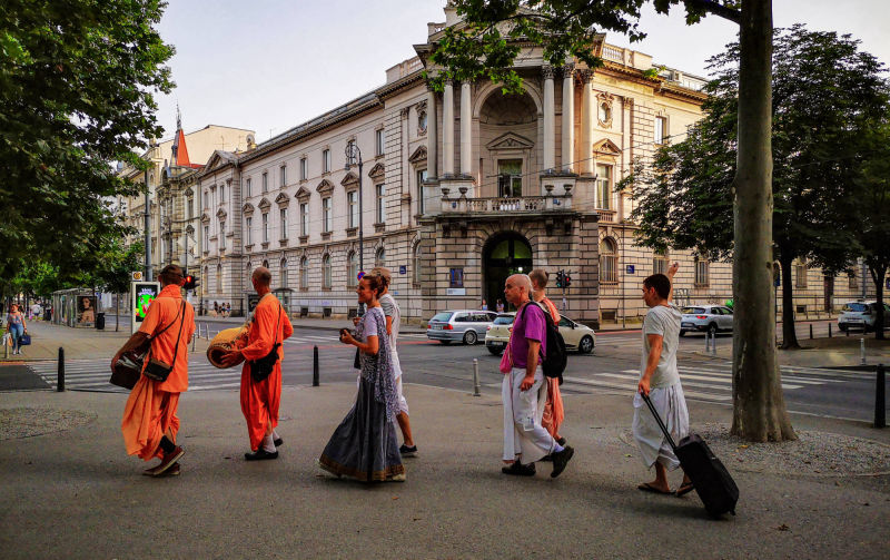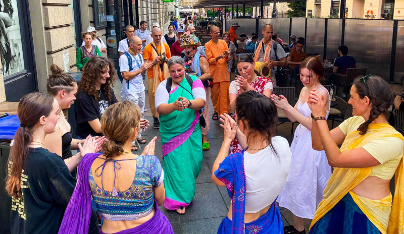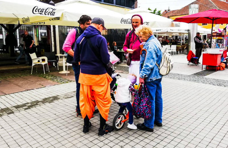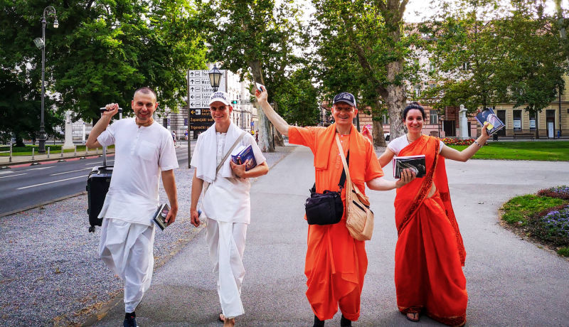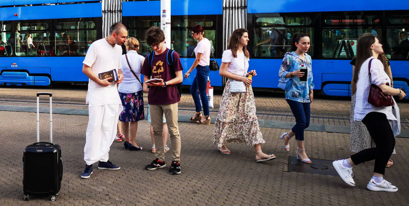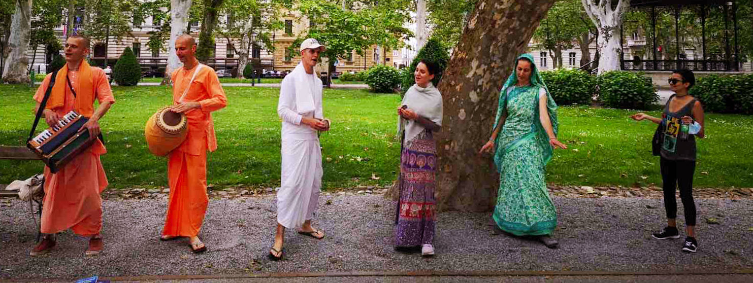 Nakon dugo vremena, planetarno poznata 'Harinama Ruci' putujuća skupina, predvođena Visnujana dasom iz Slovačke, ovoga puta posebno opunomoćena prisustvom Njegove Svetosti Maha Visnu Swamija, posjetila je Zagreb i boravila u hramu. Osim Maharaja i Visnujana, ostatak ekipe činilo je još dvoje bhakta - bhakta Vedran iz Splita (sin mataji Ekangini) i Jivananda das iz Slovačke. Osjećamo se posebno zahvalnim na neprocjenjivom kirtan iskustvu s Maharajem te divnim predavanjima koje je održao u dva navrata. Za vrijeme njihovog boravka održali smo tri zajednička harinama u kojima smo podijelili preko 100 knjiga!