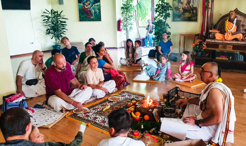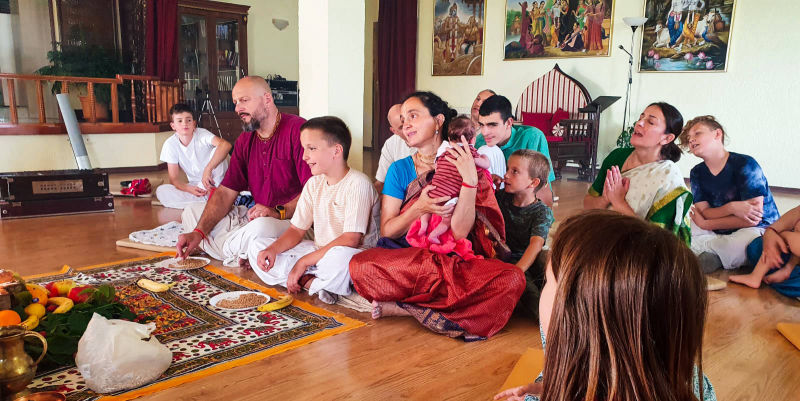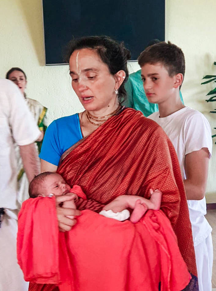 Na astrološki povoljan dan, u hramskoj prostoriji, izvedena je vedska yajna povodom davanja imena novorođenoj kćerkici Sumitre devi dasi i Tirtha-sevane dase. Budući da je mala djevojčica rođena baš na Nrsimha-caturdasi (dan pojave Gospodina Nrsimhadeve) svečano je dobila prigodno ime: Narasimhi. U prisustvu mnogih bhakta i rodbine, yajnu je vodio naš dragi brahmana-vaišnava, Divya-prabandha das.