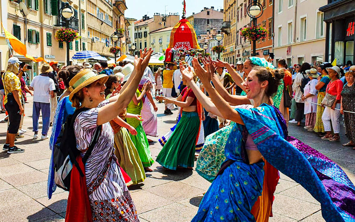 U Rijeci je održana 19-a po redu Ratha Yatra, "Festival kočija". Prijevoz na relaciji Zagreb-Rijeka žarko se tražio sve dok uistinu za to nije postalo prekasno. Tako je 200-injak bhakta Riječkim Korzom vuklo kočiju Gospodina Jagannatha, Balarama i Subhadre te glasno pjevalo sveto ime i plesalo u zanosu. Ukupno je podijeljeno 132 knjige, a od toga su bhakte iz zagrebačkog hrama podijelili 109.