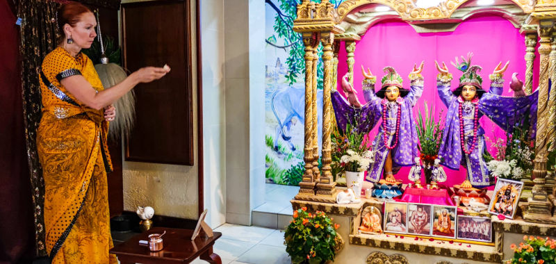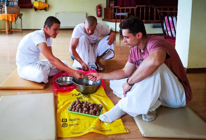 Bhoga za božanstva: Ukoliko imate brahmansku inicijaciju možete kod kuće pripremiti jelo poput slatkiša te ga donijeti u hram kako bi se ono moglo ponuditi za večeru Šri Šri Gaura Nitai.
