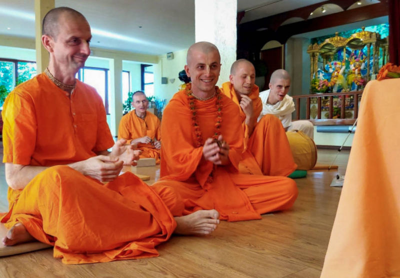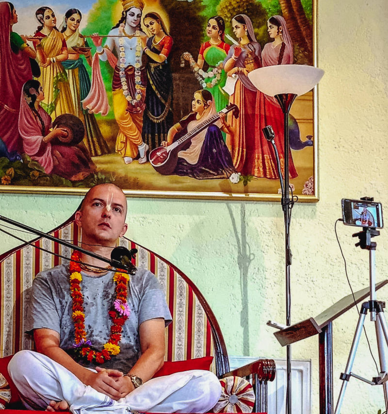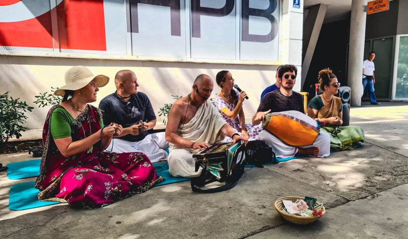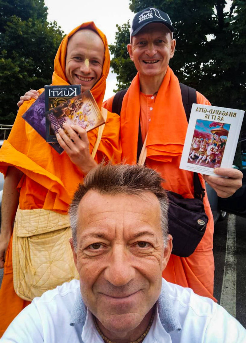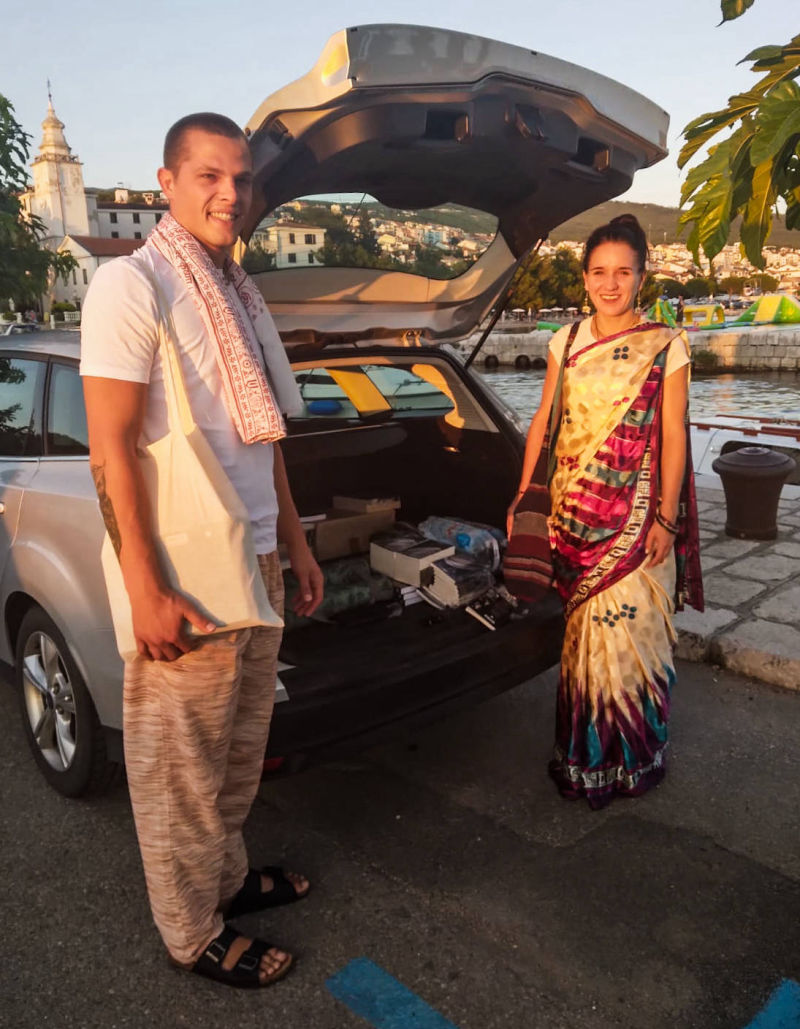 Inače, Advaita das i njegov brat, Ameyatma das, dolaze nam čak iz Rusije, a njihov guru ih je poslao u naš hram dijeliti knjige i, s obzirom da hrvatski nije njihov materinji jezik, ide im prilično dobro. Ne samo to, pravi su primjer poniznih i marljivih bhakta koji prije sankirtana prave capatije za bhakte, čiste kuhinju i služe svojim sustanarima prasadam ujutro, a kada se nakon peterosatnog sankirtana vrate u hram, čiste hodnike i toalete.