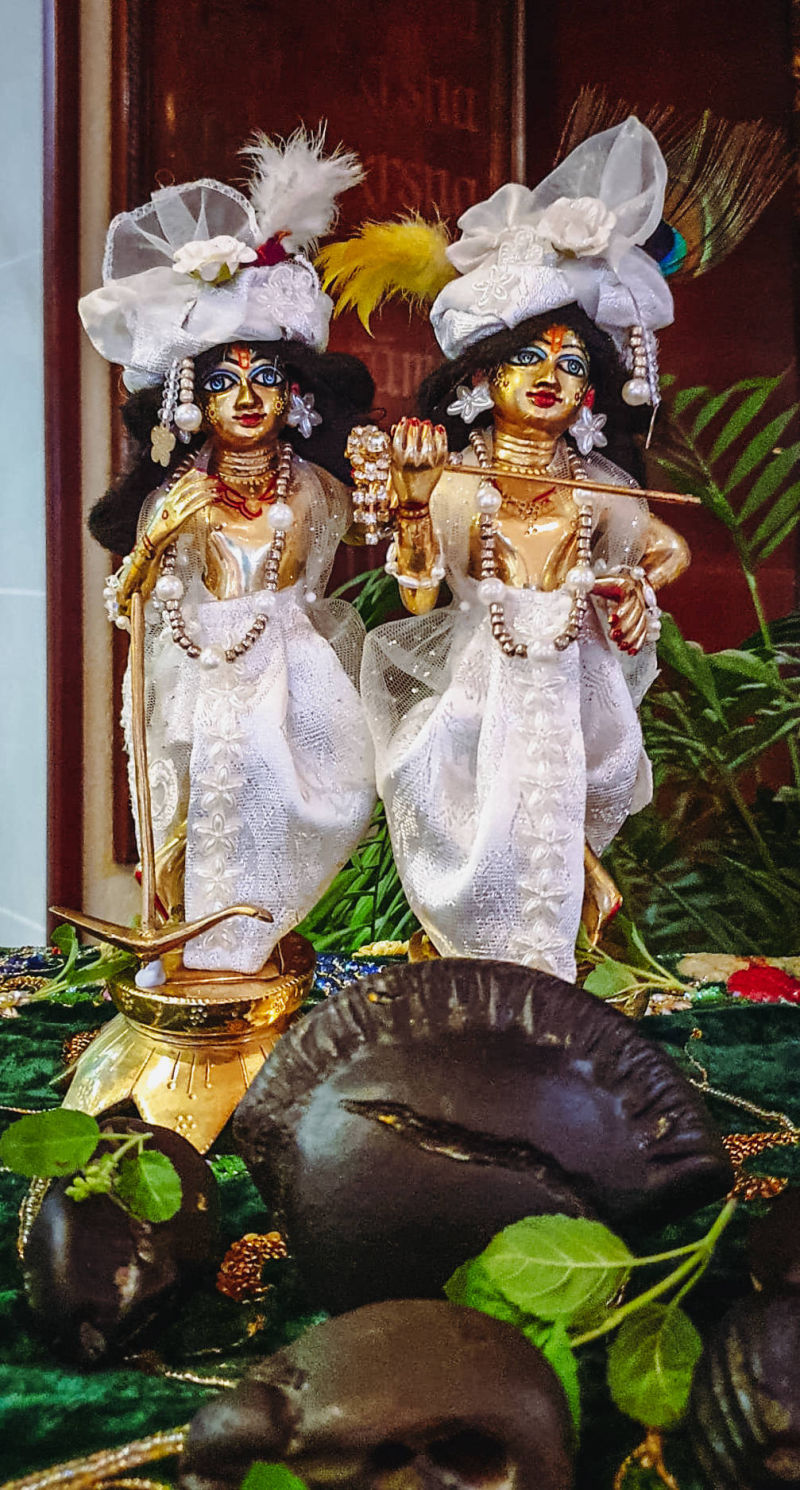 Kao pravi Slavljenik, u raskošnoj bijeloj odjeći zlatne boje, sa svjetlucavim nakitom, velikim turbanom na glavi i ovjenčan prekrasnim cvjetnim garlandom, koje je prihvatio od bhakta kao njihovu službu Njemu, Gospodin je bio spreman za ovaj veliki dan, baš kao i bhakte, koje su cijeli dan služile kako bi Gospodin i Njegovi rođendanski gosti mogli doživjeti posebno transcendentalno iskustvo.
