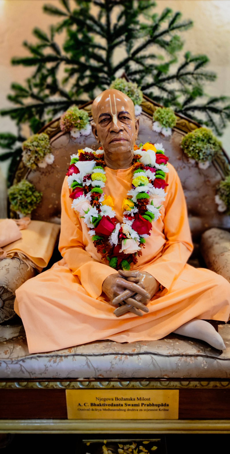 Tradicionalno, na ovaj poseban dan, bhakte izražavaju Šrila Prabhupadi svoja osjećanja ljubavi, zahvalnosti te požrtvovnosti njegovoj misiji kroz čitanje pisanih ponuda. Čini se da svatko od nas tek kroz vrijeme i slijeđenje instrukcija koje nam je Prabhupada dao može dublje i potpunije sagledati svoj osobni odnos s njim, tako da je čitanje ponuda i ove godine bila velika inspiracija prisutnim bhaktama, kao i lekcija u kojoj je naš dragi gost iz Crikvenice, Isodyana das, govorio o nevjerojatnom podvigu koji je Šrila Prabhupada učinio kao službu za svog duhovnog učitelja i Krišnu.
