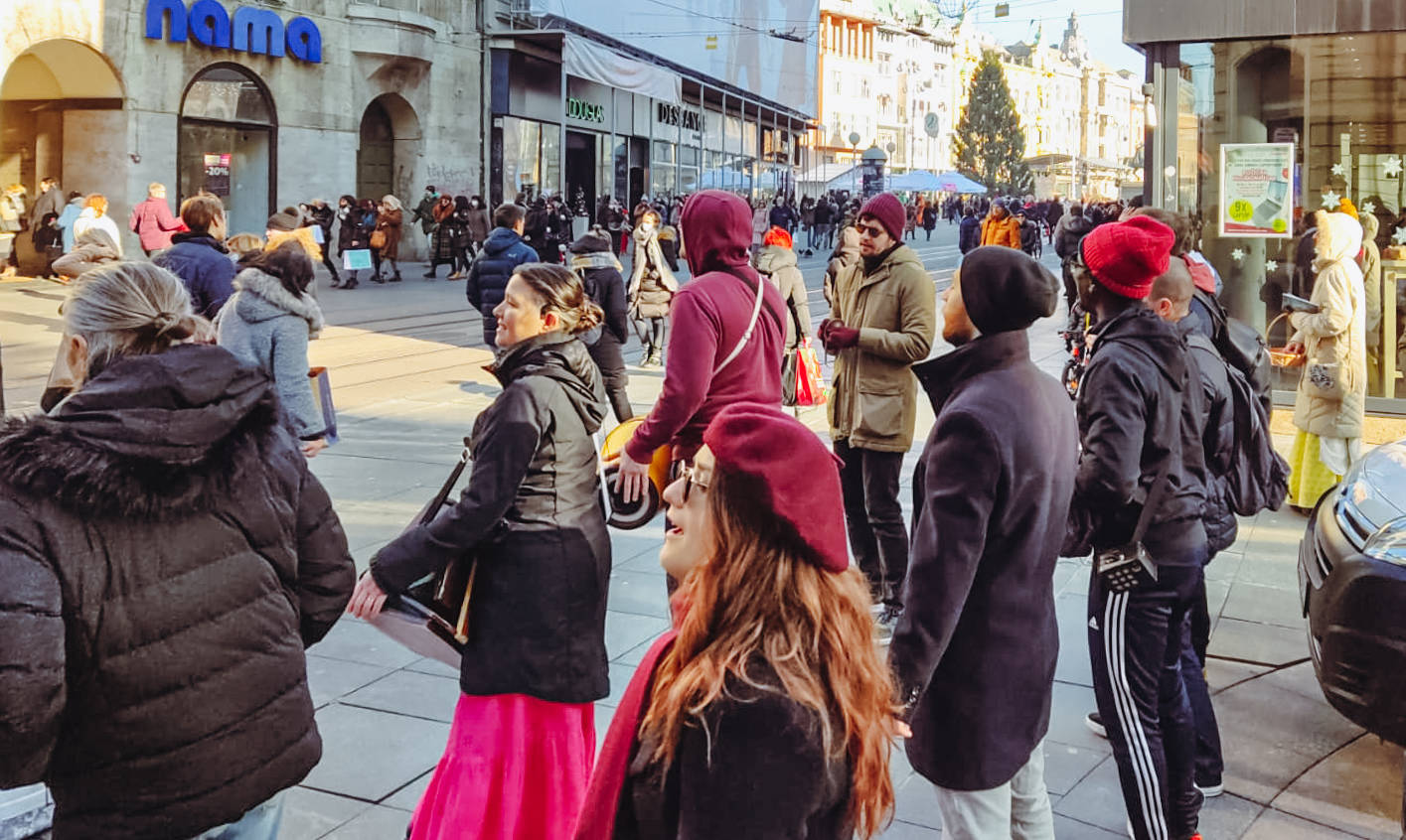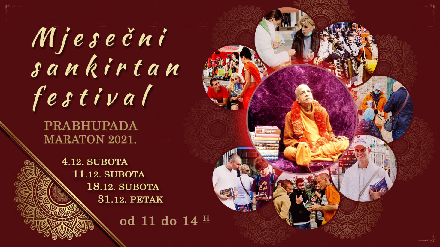 Mjesec prosinac je uvijek u znaku Prabhhupada maratona, kada bhakte diljem svijeta udruženim snagama i većom učestalošću izlaze van dijeliti knjige. Tako smo i mi odlučili povećati učestalost Mjesečnih Sankirtan Festivala koje smo u prosincu održali čak četiri puta. Tako je, možemo reći, Mjesečni sankirtan festival postao Tjedni sankirtan festival.