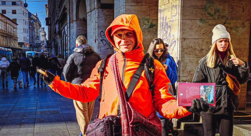 Jeste li znali da ISKCON Zagreb Nova Jaladuta hram ima u centru grada ured s radnim vremenom od 10:00 do 17:00 sati? Jedini je problem što mu lokacija nije fiksna, pa ako ga želite posjetiti morate se malo prošetati između trga Bana Jelačića, preko Zrinjevca do Glavnog kolodvora. Pokretni ured je lako prepoznati, jer je svjetlucavo narančaste boje, a iz njega se čuju zvuci Prabhupadinih bhajana. Moguće je da će taj "ured" prije vas zaustaviti, nego što ćete ga vi sami pronaći.