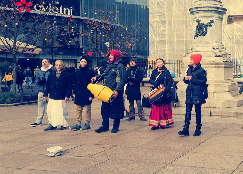 Neizmjerna hvala svim bhaktama koji su unatoč izazovnim zimskim uvjetima sate i sate proveli na ulici pjevajući u harinamu te dijeleći knjige i kolačiće prolaznicima.