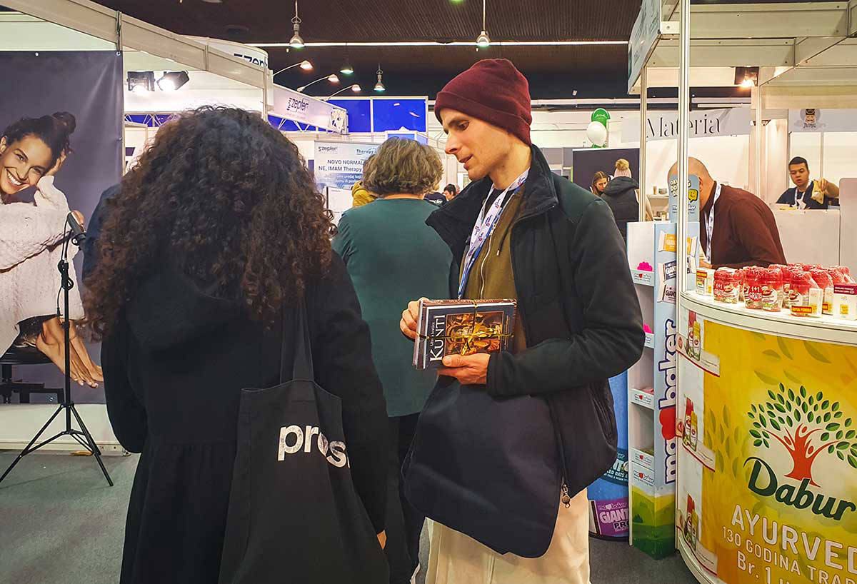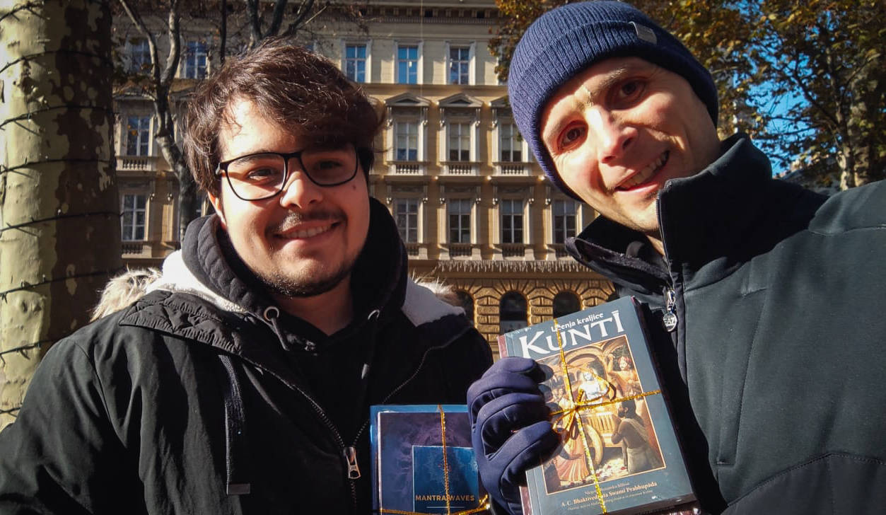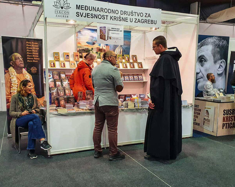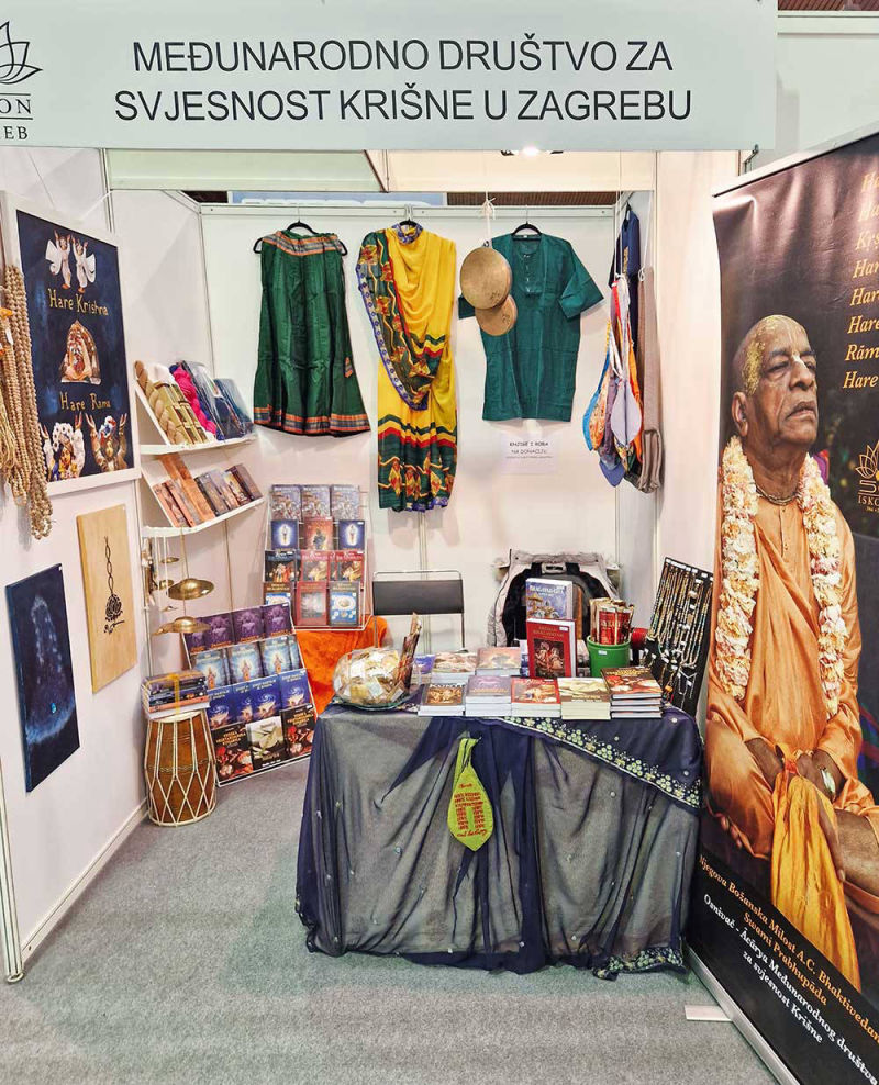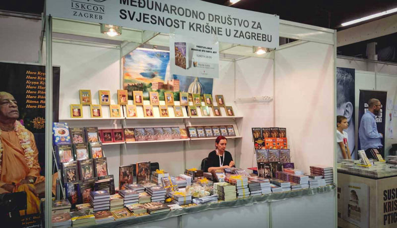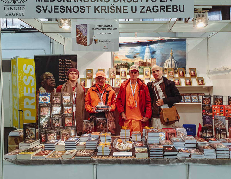 Ovom prilikom želimo zahvaliti svim bhaktama koji su sudjelovali u pripremi štanda, dijeljenju knjiga, doniranju za troškove prijave na sajam te svim ostalim „sitnim” službama koje su u konačnici, ovog mjeseca rezultirale značajnim porastom u dijeljenju knjiga. U službu je bilo uključeno preko 30 bhakta. Tako smo zajedničkim naporima za vrijeme trajanja Interliber maratona podijelili 1.336 knjiga te preko 3.400 keksića!