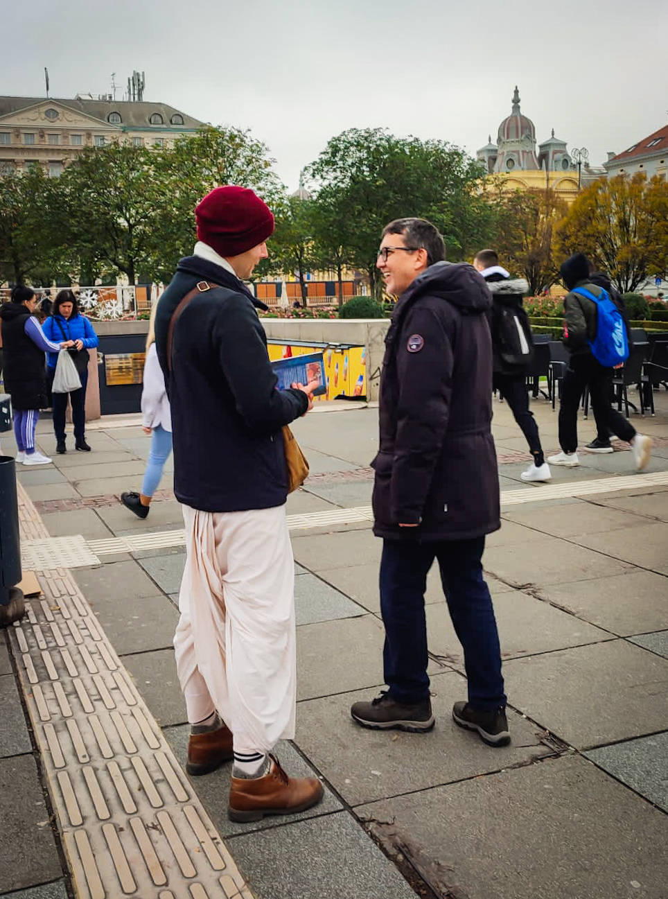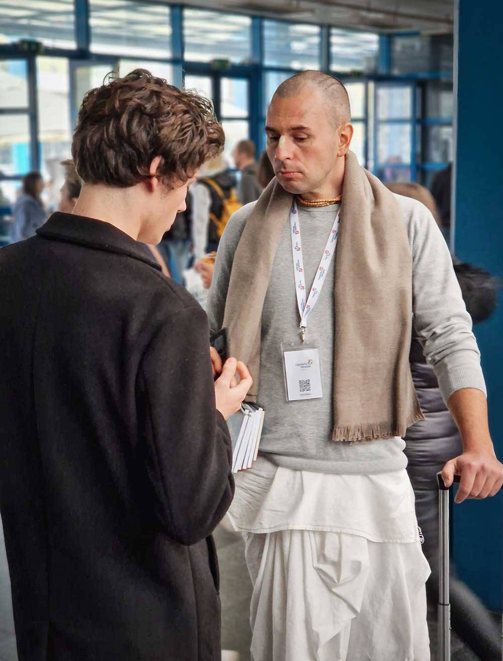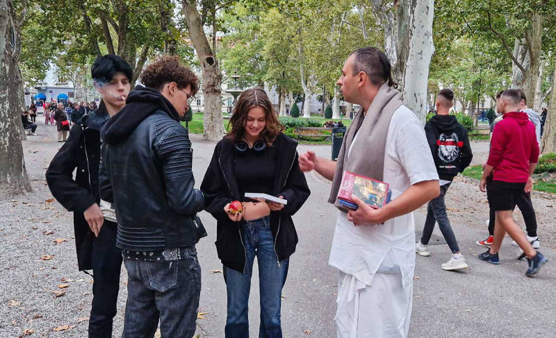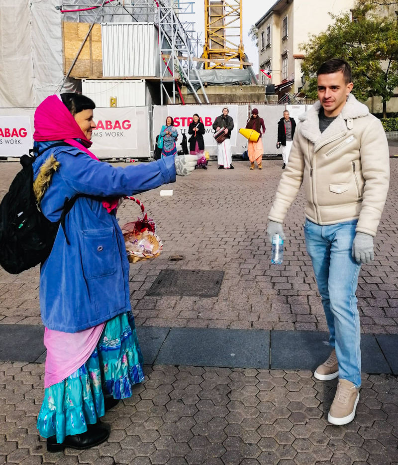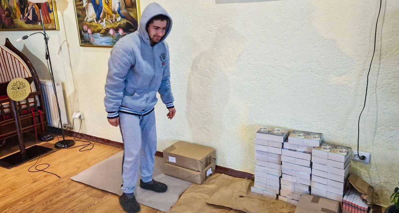 Ovom prilikom želimo zahvaliti svim bhaktama koji su sudjelovali u pripremi štanda, dijeljenju knjiga, doniranju za troškove prijave na sajam te svim ostalim „sitnim” službama koje su u konačnici, ovog mjeseca rezultirale značajnim porastom u dijeljenju knjiga. U službu je bilo uključeno preko 30 bhakta. Tako smo zajedničkim naporima za vrijeme trajanja Interliber maratona podijelili 1.336 knjiga te preko 3.400 keksića!