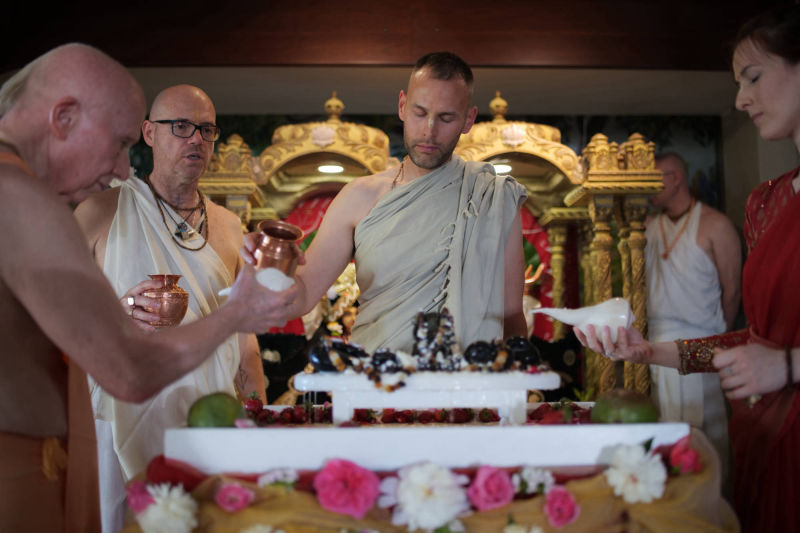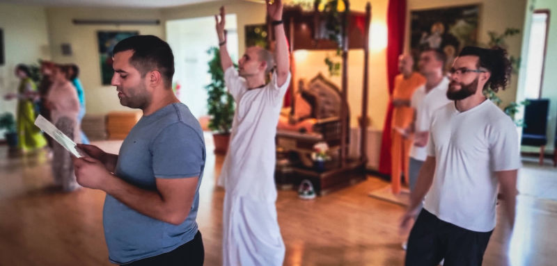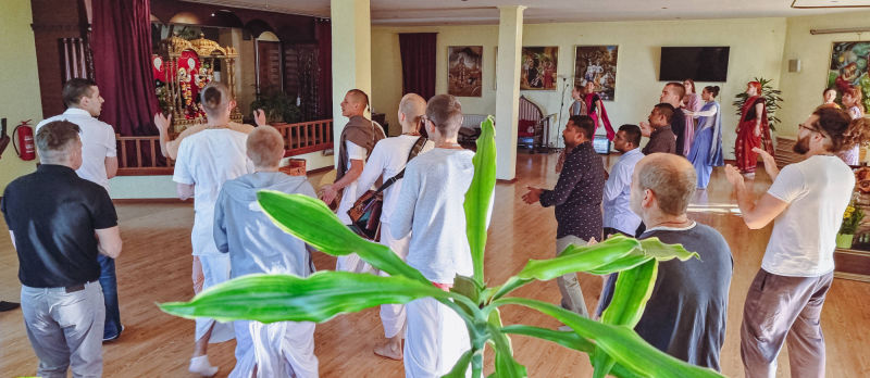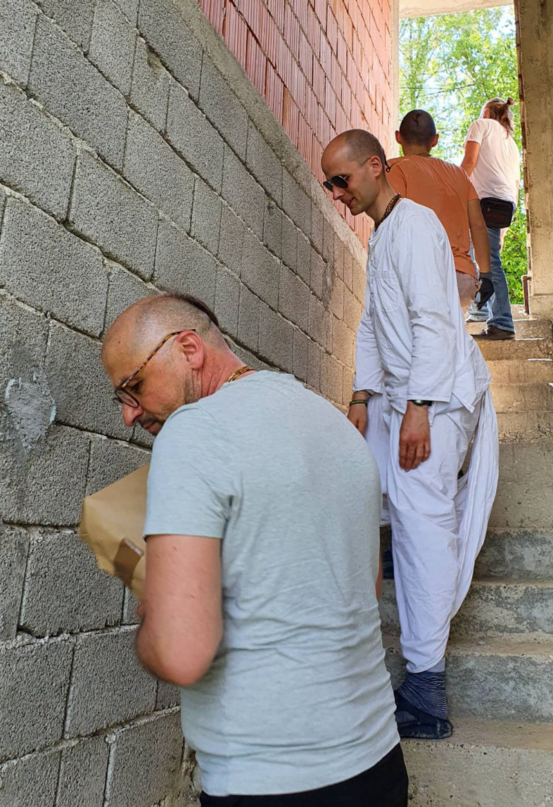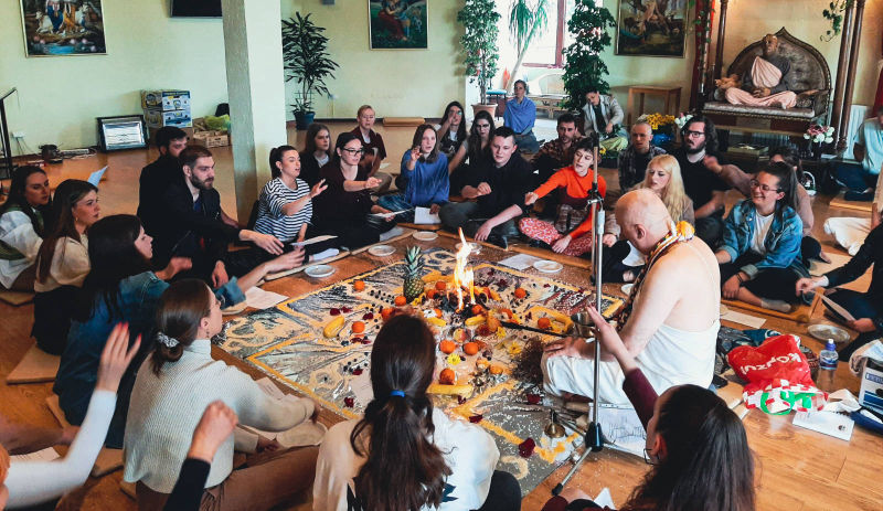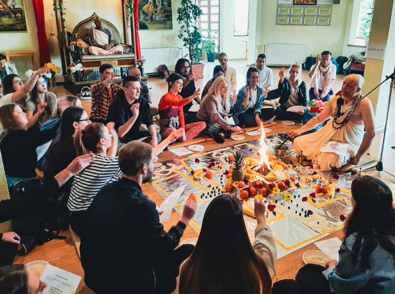 Around twenty students from the Faculty of Philosophy, cared for by their professor Ramahari prabhu (ex Hrvoje Čargonja), visited the temple where they had the opportunity to witness the performance of a true Vedic yajna, by participating in it themselves.